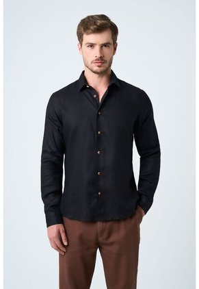 Camisa Manga Larga En Lino Para Hombre Silueta Semi Ajustada Camisa Manga Larga En Lino Para Hombre Silueta Semi Ajustada Negro M VÉLEZ