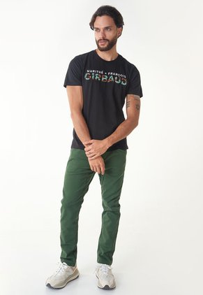Destaca tu estilo casual con esta camiseta negra de Marithé François Girbaud! Con un sobredimensionado estampado en el frente que captura las vibras distintivas de la marca, esta prenda ofrece una silueta slim para un look moderno y sofisticado. Hecha en algodón, garantiza comodidad y estilo en cada uso.