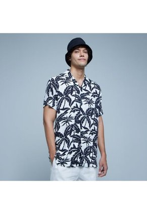 Camisa Para Hombre Manga Corta Sin Bolsillo Cuello Resort Color Crema Marca Ostu #60010848