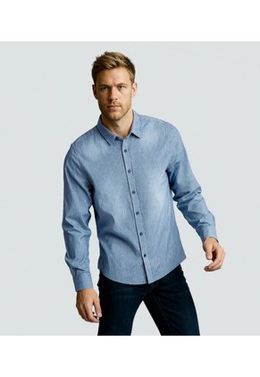 Camisa Para Hombre Manga Larga Con Bolsillo Cuello I Color Azul Marca Patprimo #44017339