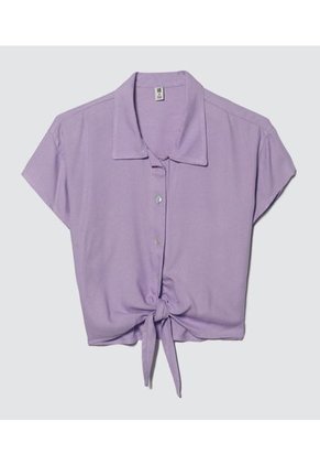 Camisa para niña, cuello camisero, manga corta, textura lisa, silueta amplia, diseño con anudado al frente.Especificaciones:Color LilaComposición: Viscosa 100%Instrucciones de Lavado:No dejar en remojoLavar en agua fría separadamenteNo usar blanqueadorNo retorcerSecar a la SombraPlancha tibiaHecho en ColombiaFabricado por: Manufacturas Eliot SASGarantía: 30 Días.