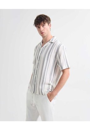 Camisa Resort A Rayas Para Hombre Crema Seven Seven