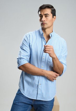 Camisa Para Hombre Manga Larga Sin Bolsillo Cuello Casual M Color Azul Marca Patprimo #44013180