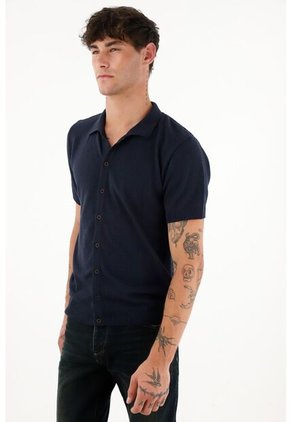 Camisa Tipo Polo Tejida Azul Para Hombre