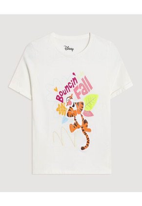 Camiseta Básica Estampada Con Apliques Crudo Para Niña