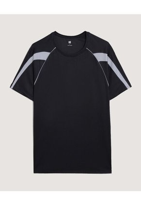 Camiseta para hombre. Manga corta. Cuello redondo clásico. Cortes tipo raglán en hombros. Paneles en contraste como detalle visual. Costuras definidas que estructuran la prenda. Ajuste regular de caída cómoda. Tecnología de secado rápido y antibacterial.Especificaciones:Color: NegroComposición: 100% PoliésterTipo de cuello: Cuello RedondoTipo de manga: Manga CortaInstrucciones de Lavado:No dejar en remojoLavar en agua fría separadamenteNo usar blanqueadorNo retorcerSecar a la SombraPlancha tibiaHecho en ColombiaGarantía: 30 Días.