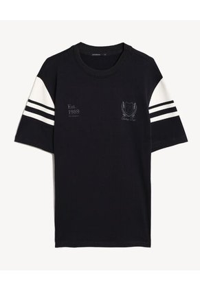 Camiseta de manga corta con cuello redondo y gráficos sutiles que aportan identidad visual, su diseño equilibrado combina una silueta cómoda con detalles que elevan el look, perfecta para quienes buscan una prenda versátil que funcione tanto en planes casuales como en outfits de inspiración urbana.Especificaciones:Color: NegroComposición: 65% Poliéster 35% AlgodónTipo de cuello: Cuello RedondoTipo de manga: Manga CortaFit: OversizeInstrucciones de Lavado:No dejar en remojoLavar en agua fría separadamenteNo usar blanqueadorNo retorcerSecar a la SombraPlancha tibiaHecho en ColombiaGarantía: 30 Días.