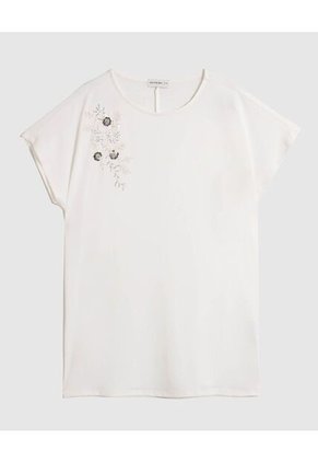 Camiseta para mujer,Manga corta tipo ranglán,Cuello redondo,Silueta holgada y fluida,Detalle decorativo en el frente,Terminación en bota sencilla,Tejido suave al tactoEspecificaciones:Color: BlancoComposición: Tela Primaria:91% Algodón 9% ElastanoTipo de cuello: Cuello RedondoTipo de manga: Manga CortaInstrucciones de Lavado:No dejar en remojoLavar en agua fría separadamenteNo usar blanqueadorNo retorcerSecar a la SombraPlancha tibiaHecho en ColombiaGarantía: 30 Días.