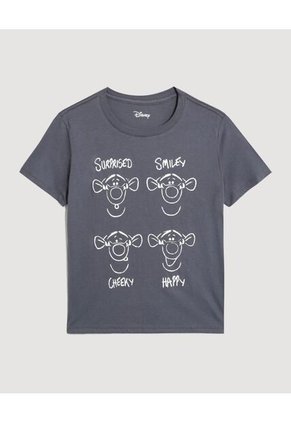 Camiseta para mujer. Manga corta. Cuello redondo clásico. Estampado frontal de Tigger con ilustraciones tipo boceto. Gráficos con expresiones Surprised, Smiley, Cheeky y Happy. Diseño divertido de licencia Disney. Ajuste cómodo para uso diario.Especificaciones:Color: GrisComposición: Algodón 100%Tipo de cuello: Cuello RedondoTipo de manga: Manga CortaInstrucciones de Lavado:No dejar en remojoLavar en agua fría separadamenteNo usar blanqueadorNo retorcerSecar a la SombraPlancha tibiaHecho en ColombiaGarantía: 30 Días.