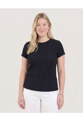 Camiseta para mujer. Manga corta. Cuello redondo clásico. Tejido con textura acanalada vertical. Silueta ajustada y favorecedora. Largo a la cadera. Prenda básica para uso diario.Especificaciones:Composición: 100% PoliésterTipo de cuello: Cuello RedondoTipo de manga: Manga CortaInstrucciones de Lavado:No dejar en remojoLavar en agua fría separadamenteNo usar blanqueadorNo retorcerSecar a la SombraPlancha tibiaHecho en ColombiaGarantía: 30 Días.