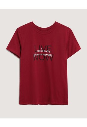 Camiseta Para Mujer Manga Corta Cuello Redondo Color Vino Marca Ostu #40092845