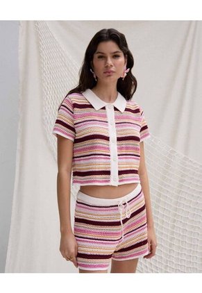 Camiseta Para Mujer Manga Corta Cuello V Color Crema Marca Seven Seven #28096473