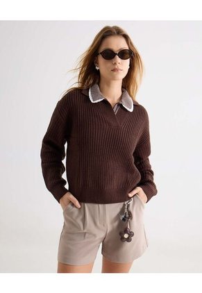 Camiseta tejido de silueta cómoda con textura acanalada que aporta carácter al look, diseño de manga larga con cuello tipo polo en contraste que eleva el estilo, ideal para usar con shorts o pantalones de tiro alto y crear combinaciones versátiles para el día a día, 7 días 7 looks.Especificaciones:Color: CaféComposición: 88% Viscosa 12% ElastanoTipo de cuello: Cuello VTipo de manga: Manga LargaInstrucciones de Lavado:No dejar en remojoLavar en agua fría separadamenteNo usar blanqueadorNo retorcerSecar a la SombraPlancha tibiaHecho en ColombiaGarantía: 30 Días.