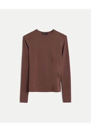 Camiseta Para Mujer Manga Larga Cuello Redondo Color Café Marca Seven Seven #28096569