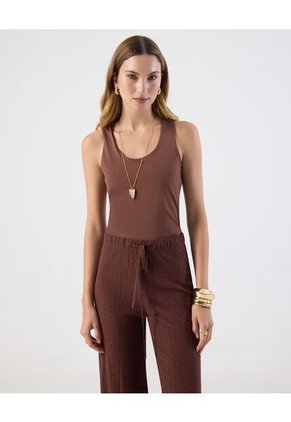 Camiseta Para Mujer Manga Sisa Cuello Redondo Color Café Marca Patprimo #30093852