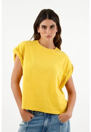 ¡Los estilos que nunca pasan de moda! Tu armario está esperando por una camiseta tan novedosa y versátil como esta. Características• Color: amarillo • Manga corta con guardapolvo • Cuello redondo • Silueta clásica • Material: Algodón 99% Elastano 1% Sobre el fit Cómoda y llena de estilo para que puedas conquistar el mundo y lucir siempre bien en tus mejores planes.