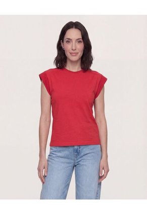 Camiseta Manga Sisa Roja En Rib Para Mujer