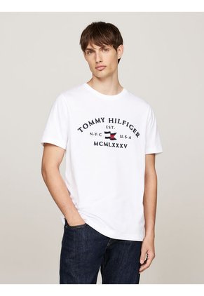 Camiseta Blanca Con Logo Bordado Tommy Hilfiger