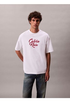 Camiseta Blanca De Algodón Grueso Con Logo Cursivo Calvin Klein
