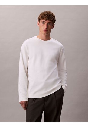 Camiseta Blanca De Manga Larga De Algodón Premium En Tejido Interlock Calvin Klein
