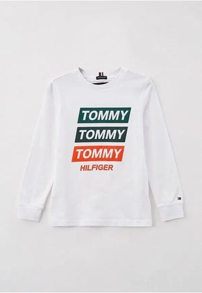 Camiseta Blanca Manga Larga Con Logo Gráfico Tommy Hilfiger