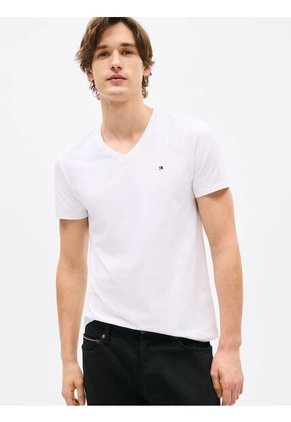 Camiseta Blanca Slim Fit Cuello V Esencial Algodón Tommy Hilfiger