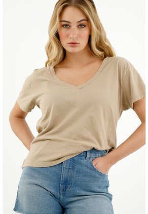 ¡Los básicos que te enamoran están de regreso! Esta camiseta está más que lista para hacer juego con cualquiera de tus otras prendas favoritas o accesorios. Características- Color: café - Manga corta - Cuello en V - Material: Algodón 100% Sobre el fit Perfecta para darte frescura y sacarte de apuros en los días en dónde no sabes cómo combinar tus outfits.