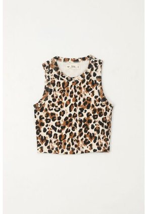 ¡Tu nueva camiseta favorita de la temporada! Este diseño tiene el equilibrio que buscas entre estilo, comodidad y actitud. Características* Color: multicolor * Manga sisa * En rib * Estampado animal print * Ajustada * Crop * Material: Algodón 98% Elastano 2% Sobre el fit El nuevo básico para usar con jeans y estar siempre cool.