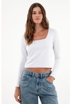 ¡Un clásico que lo transforma todo! Esta camiseta de escote cuadrado está destinada a estilizar la figura y crear looks irremplazables. Características- Color: crudo - Manga larga - Escote cuadrado - Silueta ajustada - De tacto frío - Material: Algodón 47% Viscosa 47% Elastano 6% Sobre el fit Un toque de modernidad en una silueta clásica que destaca en cualquier lugar.