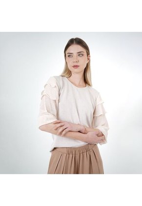 Camiseta Para Mujer Manga Corta Cuello Redondo Color Beige Marca Patprimo #30093909