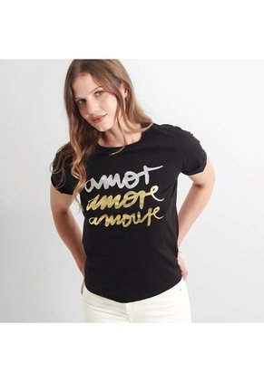 Camiseta Para Mujer Manga Corta Cuello Redondo Color Negro Marca Ostu #40092423