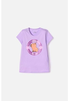Camiseta de Capybara manga corta violeta para niña