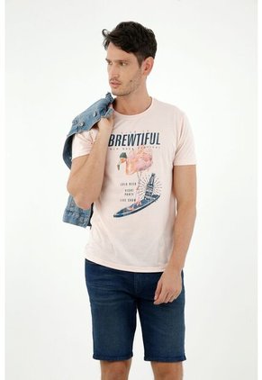 Camiseta De Hombre, Cuello Redondo Manga Corta, Con Estampado De Flamingo