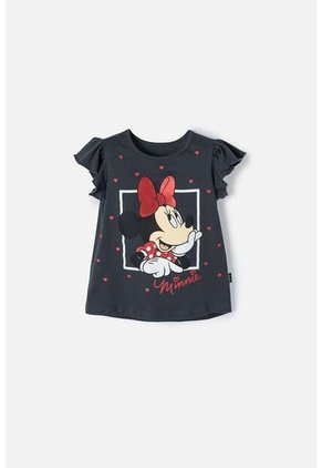 Camiseta para caminador niña. Camiseta cuello redondo, manga corta con bolero -tela algodón para mayor frescura y suavidad -cuello con elongación para facilitar el paso de la cabeza Color: Gris. Con diseño de Minnie. Licencia oficial de Minnie. Material: 99% algodón 1% elastano. Detalle especial: estampado con papel foil. Una prenda pensada para la comodidad de los niños.