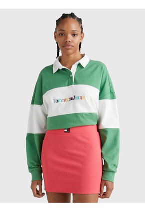 Esta camiseta de rugby, perfecta para combinar con un look informal, está confeccionada en vaporoso algodón y destaca por el logo multicolor de la parte delantera.Características• Punto de puro algodón• Diseño color block• Cuello estilo rugby• tapeta de tres botones• Puños de punto elástico• Logo de Tommy Jeans bordado en la parte delantera• Detalles distintivos de Tommy Jeans• Parche con el logo de Tommy Jeans en el puñotalla y corte• Hombros caídosComposición y cuidados• 100 % algodón de cultivo transitorio