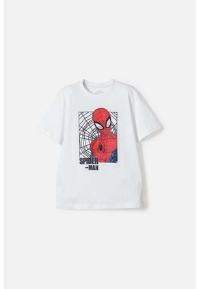 Camiseta De Spiderman Manga Corta Blanco Para Niño 10