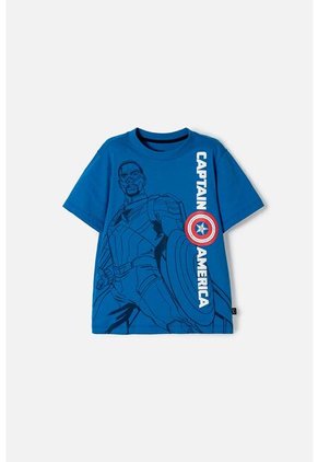 Camiseta Del Capitán América Azul Manga Corta Para Niño 8