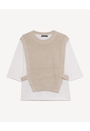 Camiseta Doble Prenda En Tricot Para Mujer Beige Seven Seven