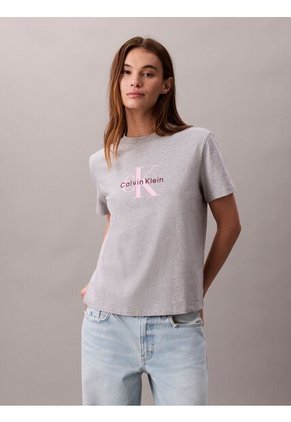 Camiseta Gris Clásica Con Monograma Estampado Calvin Klein