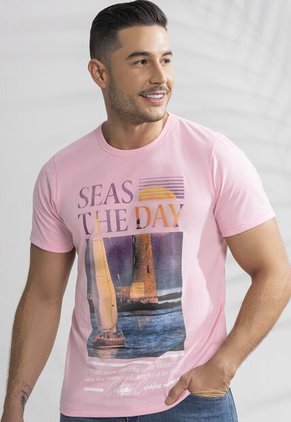 Camiseta Para Hombre Con Estampado Color Rosado Claro