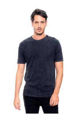 Camiseta Manga Corta Con Rib En Costados Teñido Old Wash Color Blue