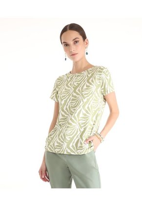 Camiseta Manga Corta Con Cuello Redondo, Camiseta Estampada En Tela Con Textura Sutil, Perfecta Para Cualquier OcasiónCamisetaPara MujerModelo: Manga CortaColor: verdeComposición: Poliéster 91% Elastano 9%Instrucciones de Lavado:No dejar en remojo Lavar en agua fría separadamente No usar blanqueador No retorcer Secar a la sombraPlancha tibia
