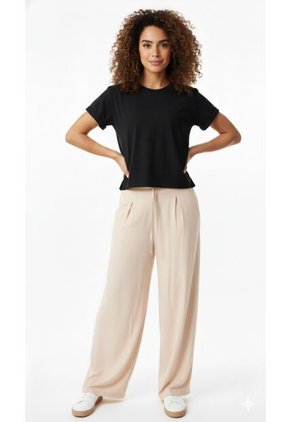 Camiseta manga corta negra para mujer con abertura en los costados y espalda más larga que el frente, un diseño moderno y favorecedor que aporta movimiento y estilo. Hecha en tela suave y cómoda, es perfecta para looks casuales que buscan un toque contemporáneo sin esfuerzo.