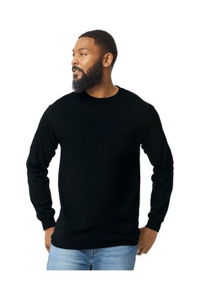 Camiseta Manga Larga Adulto Con Bolsillo Negro Gildan