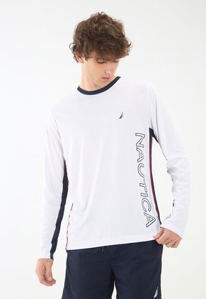 Camiseta Manga Larga Blanco-Azul-Rojo Nautica
