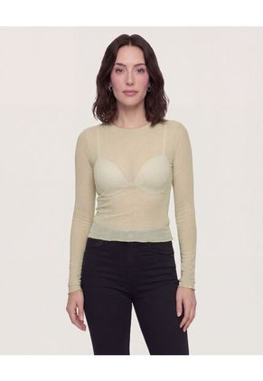 Camiseta Manga Larga En Mesh Para Mujer Verde Ostu