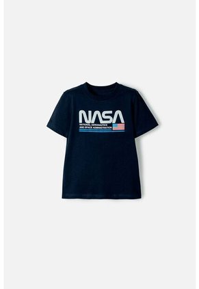 Camiseta para caminador niño. Camiseta cuello redondo, manga corta -tela algodón para mayor frescura y suavidad -cuello con elongación para facilitar el paso de la cabeza Color: Azul oscuro. Con diseño de Nasa. Licencia oficial de Nasa. Material: componente: camiseta iconica , composición: 99% algodón, 1% elastano. Diseñada para acompañar los mejores momentos del día.
