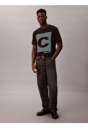 Camiseta Negra De Manga Corta Con Estampado Gráfico A Rayas Calvin Klein