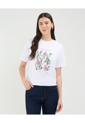 Camiseta Estampada Para Mujer Dusti Manga Corta Blanca