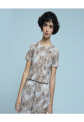 Camiseta Para Mujer Manga Corta Color Taupe Marca Seven Seven #28095998